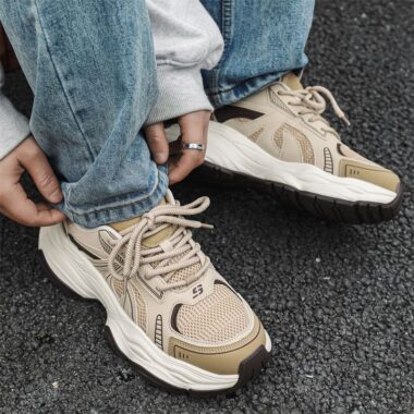 Spring Versatile Thick Sole Breathable Mesh Men Sneakers Custom